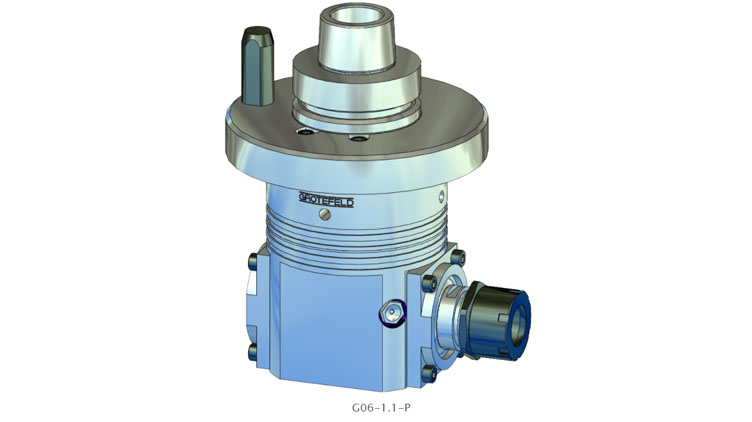 G06-1.1 系列角頭具有連續(xù)加工主軸。驅(qū)動(dòng)速度以 1:1.55 的比例傳遞到刀架。間歇運(yùn)行時(shí)主軸最高轉(zhuǎn)速可達(dá) 20,000 rpm。