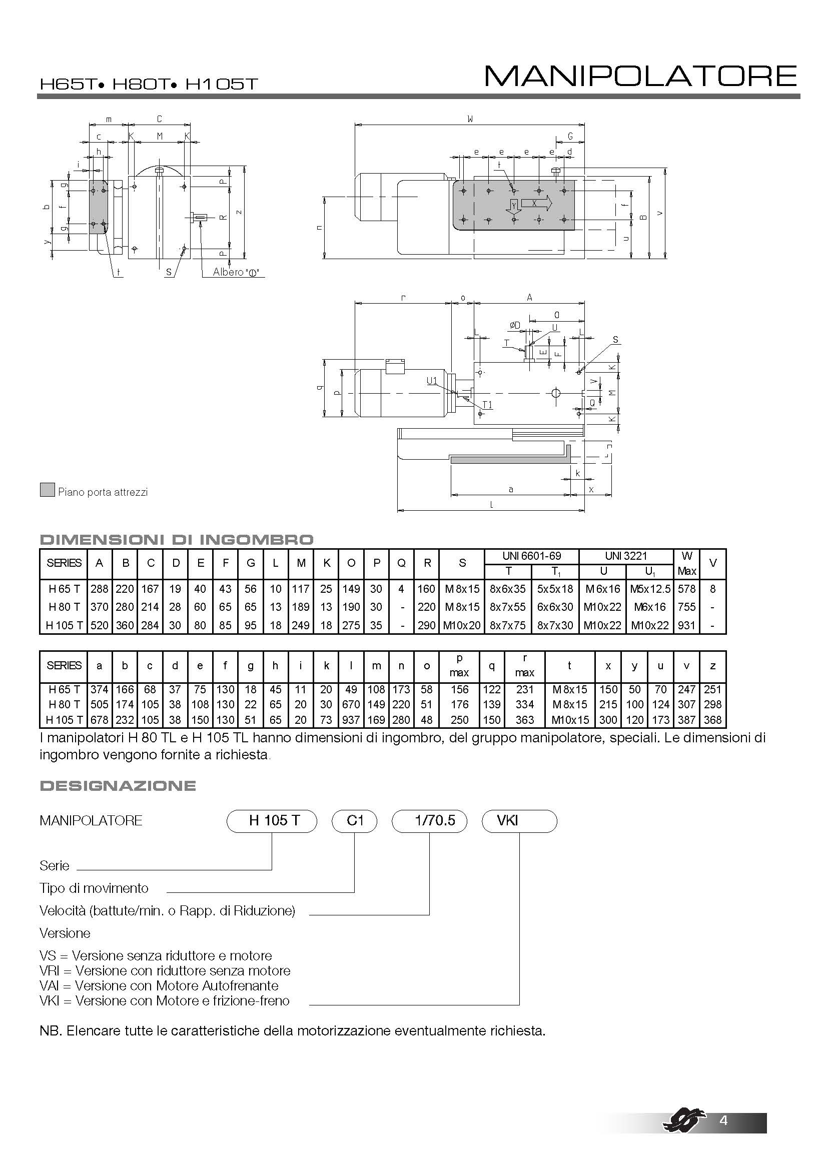 標準尺寸: | H65T - H80T - H105T |
